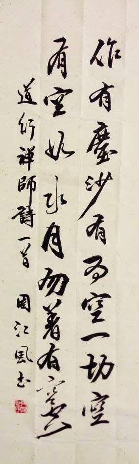 Có thể nói, đây là một trong số những bài thơ Thiền hay và hiếm. Nhận lời của Dịch giả gửi trao, tự xét thấy trình độ bút pháp của mình còn non cạn, không dám buông bút viết bừa. Suốt hơn một tháng, cứ khi nào ngơi óc là nghĩ đến bài thơ, thuộc nằm lòng cả âm Hán và lời Việt. Lục trong thư phòng lấy ra hơn trăm tờ Xuyến Chỉ, cứ cuối canh hai mỗi đêm là đem bút nghiên ra viết. Giấy góa cả mấy chục tờ, mực khô nhiều lần trên nghiên lạnh, vẫn không ưng.