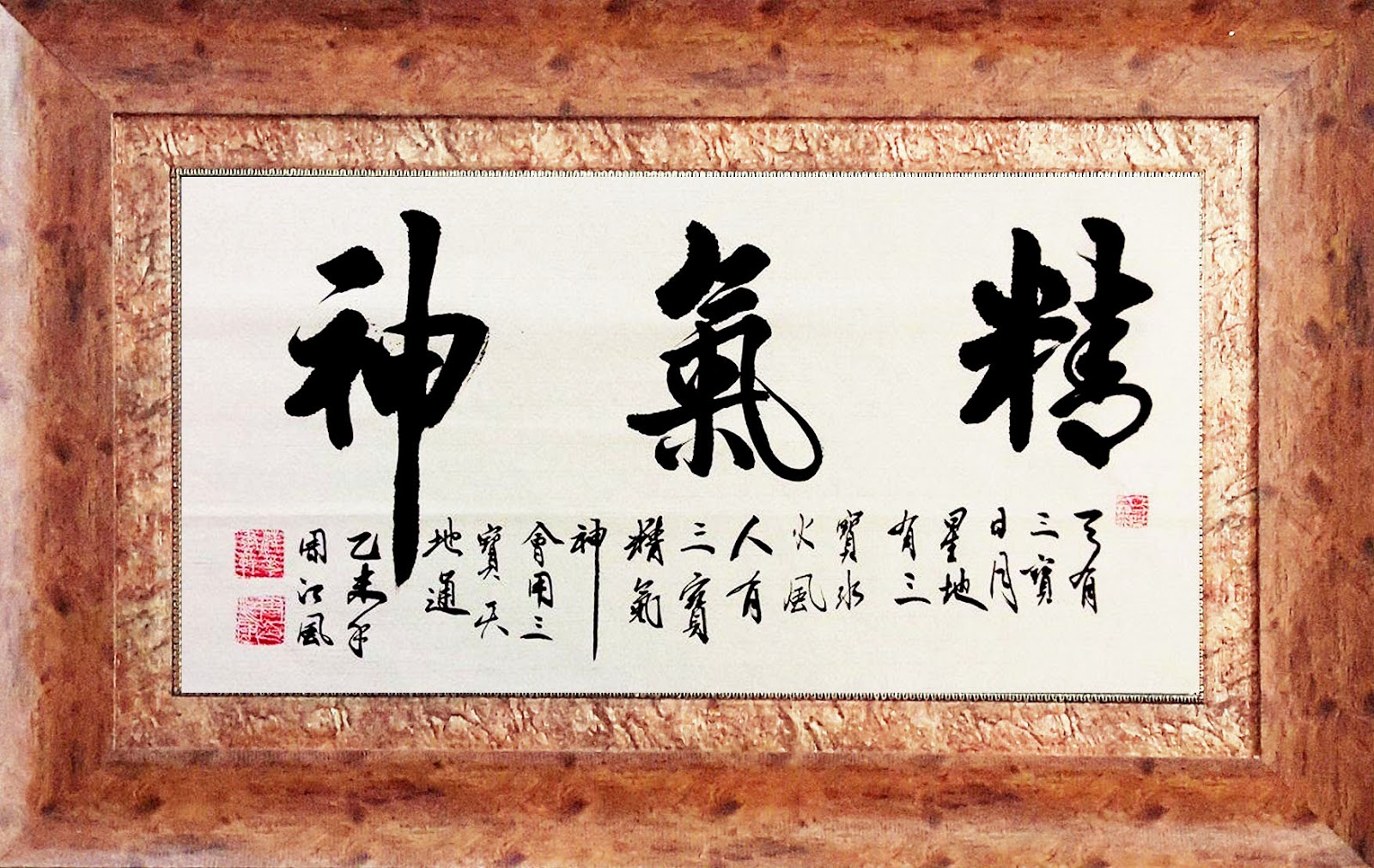 Nghĩa là: Trời có ba thứ quý: Mặt trời, mặt trăng và các vị tinh tú. Đất có ba thứ quý là Nước, gió và lửa. Con người cũng có ba thư quý giá là: Tinh, Khí và thần. Tập hợp và hội dụng được ba thứ đó thì câu thông được với trời đất.
